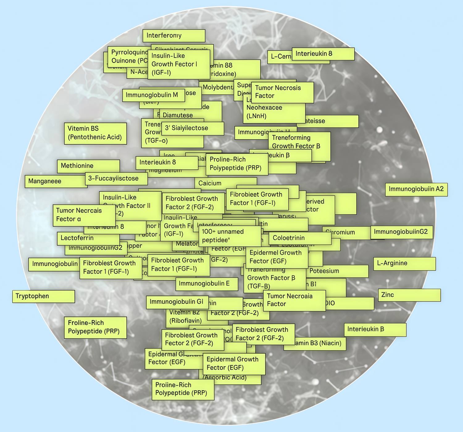 Peptides are short chains of amino acids that act as signaling molecules, directly interacting with cells to influence cellular processes throughout the body. The abundance of regenerative peptides found in colostrum bolster healthy cellular tissue repair and the maintenance of healthy skin, blood vessels, and connective tissues.